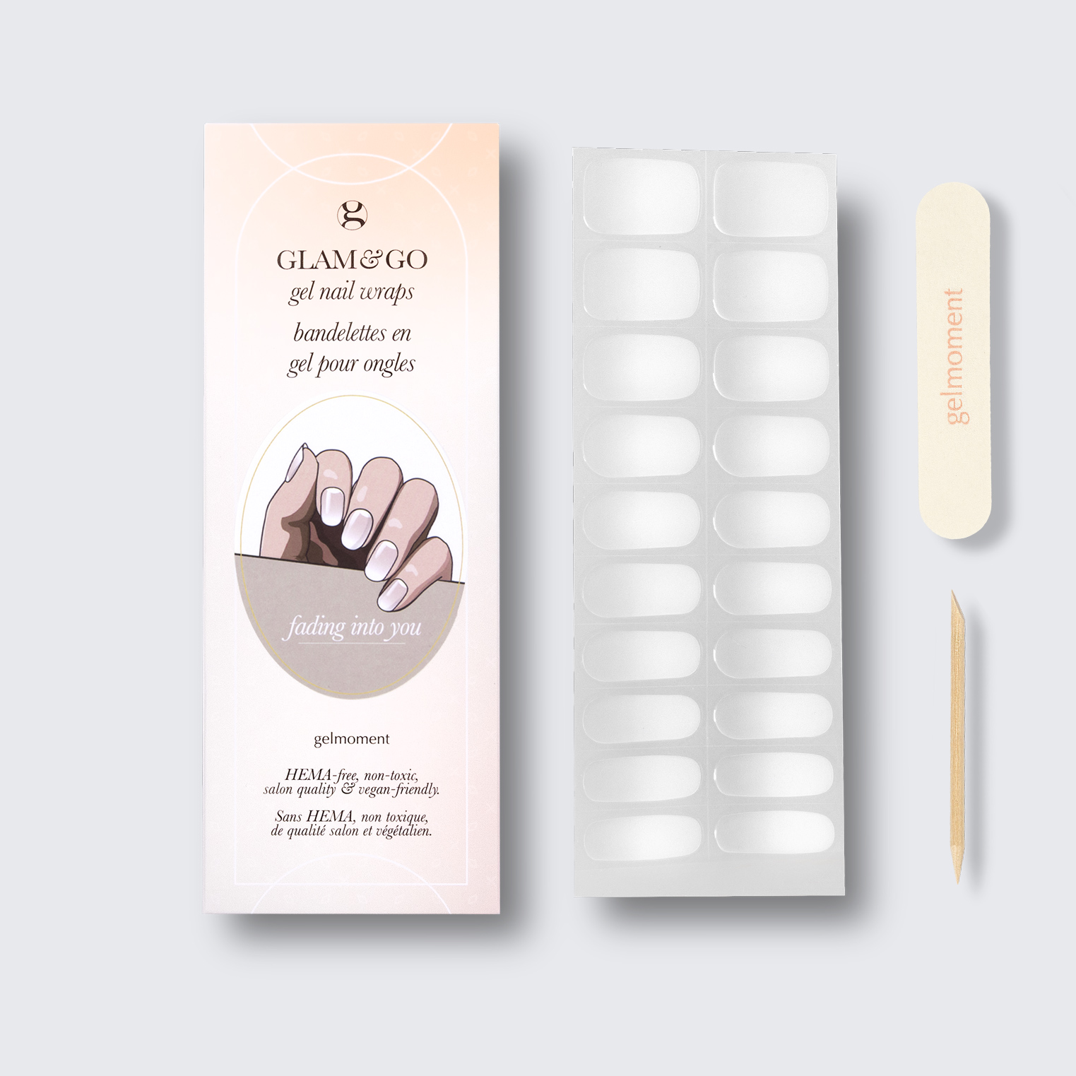Take a moment to give yourself a head-turning, DIY gelmoment experience in a few easy steps with our GLAM & GO gel nail wraps.