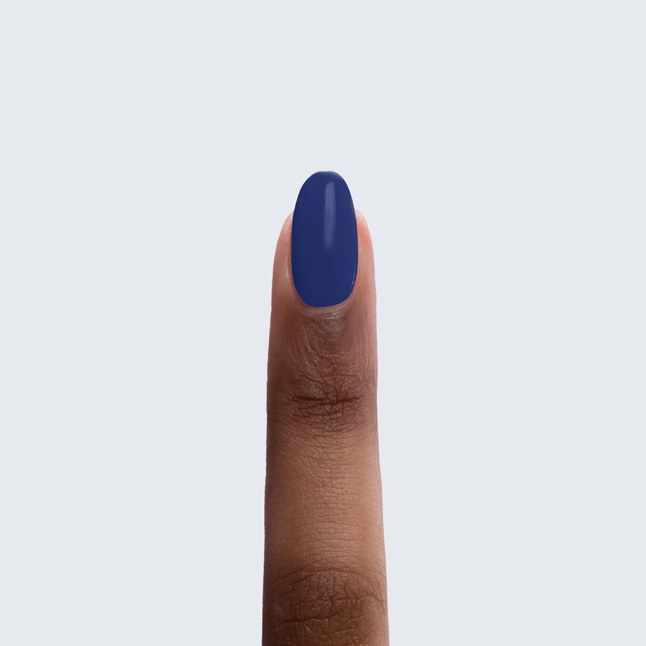 True indigo. Dark. 1 coat sheer, 2+ coats opaque. Cool undertone.